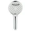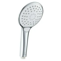 Die Handbrause Babsko von Camargue überzeugt durch ihre praktischen Eigenschaften. Sie bietet drei Strahlarten, zwischen denen man einfach per Knopfdruck wechseln kann. Das Easy Clean System verhindert nachhaltig Kalkablagerungen an den Düsen. Auf Grund ihrer ergonomischen Form liegt die Handbrause gut in der Hand und passt durch den ½“ Anschluss auf jeden handelsüblichen Brauseschlauch. Sie ist KTW/W270 zertifiziert und erfüllen somit alle gültigen Trinkwassernormen.