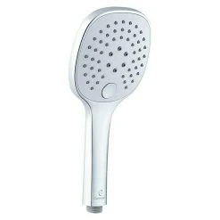 Die Handbrause Gratl von Camargue überzeugt durch ihre praktischen Eigenschaften. Sie bietet drei Strahlarten, zwischen denen man einfach per Knopfdruck wechseln kann. Das Easy Clean System verhindert nachhaltig Kalkablagerungen an den Düsen. Auf Grund ihrer ergonomischen Form liegt die Handbrause gut in der Hand und passt durch den ½“ Anschluss auf jeden handelsüblichen Brauseschlauch. Sie ist KTW/W270 zertifiziert und erfüllen somit alle gültigen Trinkwassernormen.