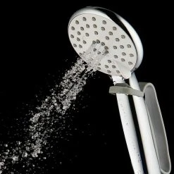 Die Handbrause Plitvica von Camargue überzeugt durch ihre praktischen Eigenschaften. Sie bietet drei Strahlarten, zwischen denen man einfach per drehbarer Strahlscheibe wechseln kann. Das Easy Clean System verhindert nachhaltig Kalkablagerungen an den Düsen. Auf Grund ihrer ergonomischen Form und der integrierten Griffschlaufe liegt die Handbrause gut in der Hand und passt durch den ½“ Anschluss auf jeden handelsüblichen Brauseschlauch. Sie ist KTW/W270 zertifiziert und erfüllen somit alle gültigen Trinkwassernormen.