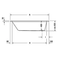 Die Badewanne D-Code von Duravit ist aus Sanitäracryl gefertigt und passt mit ihrer klassischen Form in jedes Bad. Der weiß schimmernde Glanz der Acryloberfläche passt sich ideal an die übrigen keramischen Objekte im Bad an. Durch die rechteckige Form wird der Platz optimal genutzt und zusammen mit der Rückenschräge ein Maximum an Komfort erreicht. Die porenfreie glatte Oberfläche ist farbecht, widerstandsfähig gegenüber fast allen haushaltsüblichen Reinigungsmitteln und sehr reinigungsfreundlich. Des Weiteren ist die Badewanne, bei der sich der Ablauf im Fußbereich befindet, leicht zu montieren.