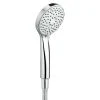 Die Handbrause Tempesta 100 von Grohe überzeugt durch ihre praktischen Eigenschaften. Sie bietet zwei Strahlarten, wobei das integrierte SpeedClean Antikalk-System lästige Kalkablagerungen effektiv verhindert. Die Grohe DreamSpray® Technologie verteilt auf jede einzelne Düse die gleiche Wassermenge und erzeugt so einen angenehm gleichmäßigen Strahl. Der ShockProof Silikonring am Kopf schützt vor Beschädigung durch Herunterfallen der Brause. Die Grohe StarLight® Oberfläche schützt den Brausekopf optimal und erfordert kaum Pflege.