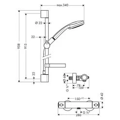 Das Brause-Set von Hansgrohe enthält eine Handbrause der Reihe Croma 100 Multi sowie ein Ecostat Comfort-Thermostat, einen Brauseschlauch, eine Brausestange, eine Seifenschale und Wandhalter aus Kunststoff. Es überzeugt durch ein sehr elegantes und modernes Gesamtbild mit harmonisch aufeinander abgestimmten Elementen. Über die drehbare Strahlscheibe können drei verschiedene Strahlarten angewählt werden. Dank der Quick-Clean Funktion verschwinden lästige Kalkablagerungen im Handumdrehen: Rückstände können von den flexiblen Anti-Kalk-Noppen einfach abgerubbelt werden. Der höhenverstellbare Schieber ist schwenkbar sowie um 90° im Winkel verstellbar. Mit dem an der Handbrause integrierten Drehwirbel wird ein Verdrehen des Brauseschlauches verhindert, was für uneingeschränktes Duschvergnügen sorgt.
