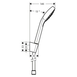 Das Brause-Set von Hansgrohe enthält eine Handbrause der Reihe Croma Select E Vario sowie einen Brauseschlauch und einen Wandhalter aus Kunststoff. Die innovative Select-Technologie ermöglicht ein bequemes Umschalten zwischen drei verschiedenen Strahlarten auf Knopfdruck. Die QuickClean-Funktion ermöglicht dank flexibler Silikonnoppen eine kinderleichte Entkalkung: Kalkablagerungen werden einfach abgerubbelt. Mit dem an der Handbrause integrierten Drehwirbel wird ein Verdrehen des Brauseschlauches verhindert, was für uneingeschränktes Duschvergnügen sorgt.