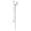 Die Brausegarnitur von Hansgrohe enthält eine Handbrause der Reihe Raindance Select S 120 sowie einen Brauseschlauch, eine Brausestange, eine Seifenschale und Wandhalter aus Kunststoff. Sie begeistert mit modernem, elegantem Design und harmonisch aufeinander abgestimmten Elementen. Die innovative Select-Technologie ermöglicht ein bequemes Umschalten zwischen drei verschiedenen Strahlarten auf Knopfdruck. AirPower senkt den Wasserbedarf, indem das Wasser mit Luft vermischt wird. So fühlt sich der Strahl zudem weicher, leichter und fülliger an. Dank der Quick-Clean Funktion verschwinden lästige Kalkablagerungen im Handumdrehen: Rückstände können von den flexiblen Anti-Kalk-Noppen einfach abgerubbelt werden. Der höhenverstellbare Schieber ist schwenkbar sowie um 90° im Winkel verstellbar. Mit dem an der Handbrause integrierten Drehwirbel wird ein Verdrehen des Brauseschlauches verhindert, was für uneingeschränktes Duschvergnügen sorgt.