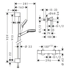 Das Brause-Set von Hansgrohe enthält eine Handbrause der Reihe Crometta Vario sowie ein Ecostat Comfort-Thermostat, einen Brauseschlauch, eine Brausestange und Wandhalter aus Kunststoff. Es überzeugt durch ein sehr elegantes und modernes Gesamtbild mit harmonisch aufeinander abgestimmten Elementen in Chrom und Weiß. Über die drehbare Strahlscheibe können zwei verschiedene Strahlarten angewählt werden. Dank der Quick-Clean Funktion verschwinden lästige Kalkablagerungen im Handumdrehen: Rückstände können von den flexiblen Anti-Kalk-Noppen einfach abgerubbelt werden. Der höhenverstellbare Schieber ist um 90° im Winkel verstellbar. Mit dem an der Handbrause integrierten Drehwirbel wird ein Verdrehen des Brauseschlauches verhindert, was für uneingeschränktes Duschvergnügen sorgt.