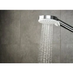 Die Handbrause Crometta Vario von Hansgrohe begeistert mit modernem, elegantem Design und innovativen Funktionen. Sie kann bereits ab einem Wasserdruck von nur 0,2 bar eingesetzt werden. Mit der drehbaren Strahlscheibe kann zwischen zwei verschiedenen Strahlarten umgeschaltet werden. Dank der Quick-Clean Funktion verschwinden lästige Kalkablagerungen im Handumdrehen: Rückstände können von den flexiblen Anti-Kalk-Noppen einfach abgerubbelt werden. Die verchromte Oberfläche ist besonders pflegeleicht und langlebig. Mit ihrem genormten ½“-Anschluss ist die Handbrause passgenau montierbar.