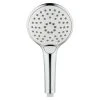 Die Handbrause Raindance Select S 150 von Hansgrohe begeistert mit modernem, elegantem Design und innovativen Funktionen. Die Select-Technologie ermöglicht ein bequemes Umschalten zwischen drei verschiedenen Strahlarten auf Knopfdruck. AirPower reichert das Wasser mit Luft an, was das Strahlbild fülliger und weicher macht und gleichzeitig den Verbrauch senkt. Dank der Quick-Clean Funktion verschwinden lästige Kalkablagerungen im Handumdrehen: Rückstände können von den flexiblen Anti-Kalk-Noppen einfach abgerubbelt werden. Die verchromte Oberfläche ist besonders pflegeleicht und langlebig. Mit ihrem genormten ½“-Anschluss ist die Handbrause passgenau montierbar.