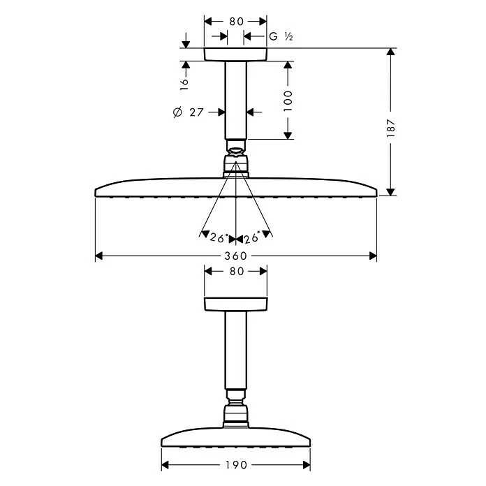 BAUHAUS Hansgrohe Kopfbrausen-Set Raindance E 360 19 X 36 Cm, 16 L/min Bei 3 Bar, Deckenmontage, Chrom