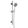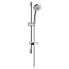 Die Brausegarnitur Rainfinity 130 von Hansgrohe überzeugt in Funktion und Design. Das Set beinhaltet eine Handbrause mit Brauseschlauch und eine praktische Brausestange mit Handbrausehalterung und einer Glasablage. Die verchromte Handbrause liefert auf Wunsch die Strahlarten PowderRain, Intense PowderRain und MonoRain. Diese hüllen einen traumhaft in Wasser ein und sorgen für XXL Perfomance im Bad. Mit der Quick-Clean Funktion verschwinden Rückstände im Handumdrehen. Lästige Kalkablagerungen werden aufgrund der integrierten Anti-Kalknoppen effektiv verhindert und durch Reiben der Noppen gelöst. Der Brauseschlauch verfügt über einen brauseseitgen Drehwirbel, der lästiges Verdrehen des Brauseschlauches effiktiv verhindert.