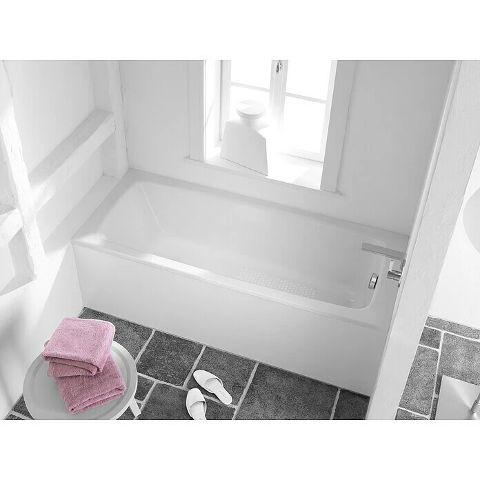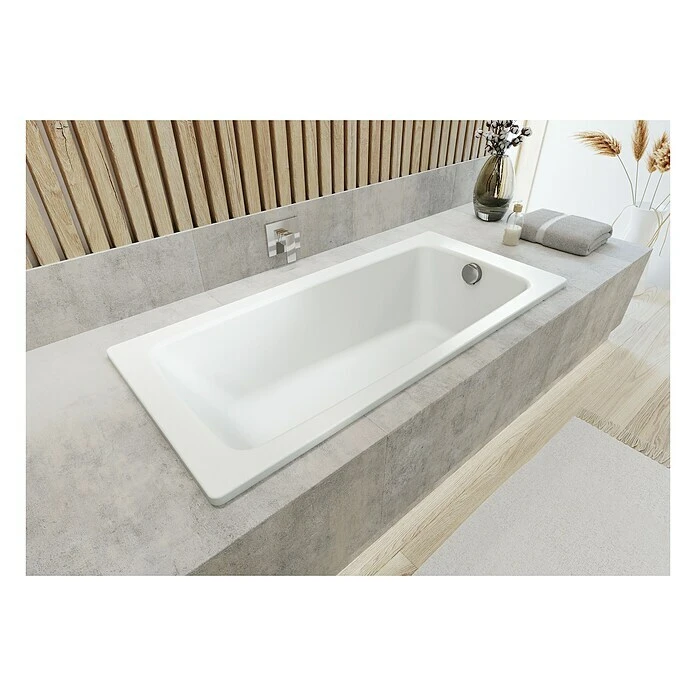 Aufgrund der stabilen Grundform reagiert die Stahl-Badewanne kaum auf Temperaturschwankungen. So wird die Gefahr von Fugenabrissen und daraus resultierende Feuchtigkeitsschäden im Bad minimiert. Auch Sonne und UV-Strahlung schaden der Emaillierung nicht, denn die Oberfläche verblasst nicht, vergilbt nicht und behält dauerhaft den Originalfarbton. Ein zusätzliches Maß an Komfort ist durch die zwei abgeschrägten Querseiten des Innenbeckens gewährleistet.