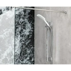 Die Brausegarnitur Gulfoss von Mixomat besteht aus der Handbrause, einer Brausestange und einem Schlauch (150 cm). Die Handbrause bietet eine Strahlart, sowie eine per Knopf einstellbare Wassersparfunktion, die den Verbrauch um 30% reduziert. Das Easy Clean System verhindert nachhaltig Kalkablagerungen an den Düsen. Die Wandhalter der Brausestange aus rostfreiem Edelstahl sind flexibel einstellbar, so dass bestehende Bohrlöcher genutzt werden können. Die Anbringung kann per Bohren mit dem im Lieferumfang enthaltenen Montagematerial erfolgen oder per Kleben mit dem ebenfalls enthaltenen Adapter. Dazu ist das Nie wieder bohren Befestigungskit BK20 (nicht im Lieferumfang enthalten) erforderlich. Alle Anschlüsse sind auf ½“ genormt und können somit mit allen anderen Mixomat Produkten, wie zum Beispiel Armaturen, Steigrohren oder Kopfbrausen kombiniert werden. Durch den verstellbaren Konusgleiter kann die Höhe der Handbrause den eigenen Bedürfnissen angepasst werden. Der Brauseschlauch ist aus Edelstahl gefertigt und doppelt gewickelt, wodurch er besonders robust und langlebig ist. Zusätzlich besitzt er eine Anti-Twist-Eigenschaft, welche lästiges Verdrehen des Schlauchs verhindert. Alle Bestandteile der Garnitur, die mit Wasser in Verbindung kommen, sind KTW/W270 zertifiziert und erfüllen somit alle gültigen Trinkwassernormen.