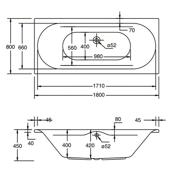 BAUHAUS Ottofond Badewanne Bali 180 X 80 Cm, Sanitäracryl, Weiß