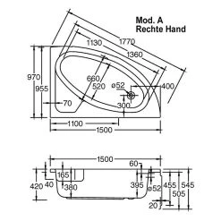 BAUHAUS Ottofond Badewanne Sansibar A Rechtsseitig, 150 X 97 Cm, Sanitäracryl, Weiß