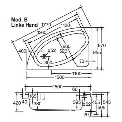 BAUHAUS Ottofond Badewanne Sansibar B Linksseitig, 150 X 97 Cm, Sanitäracryl, Weiß